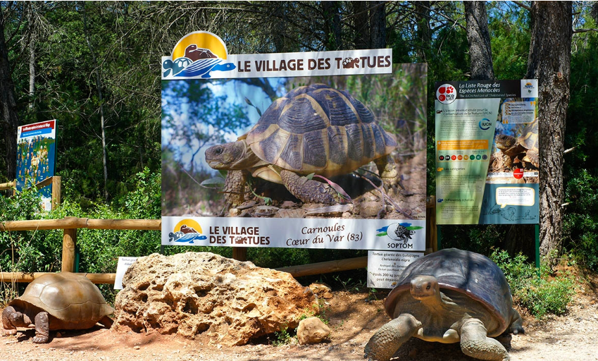 En pleine nature, sous la protection de Notre-Dame des Anges, le village des tortues est un centre pédagogique et de conservation unique en son genre, destiné à la protection des tortues rares et menacées.